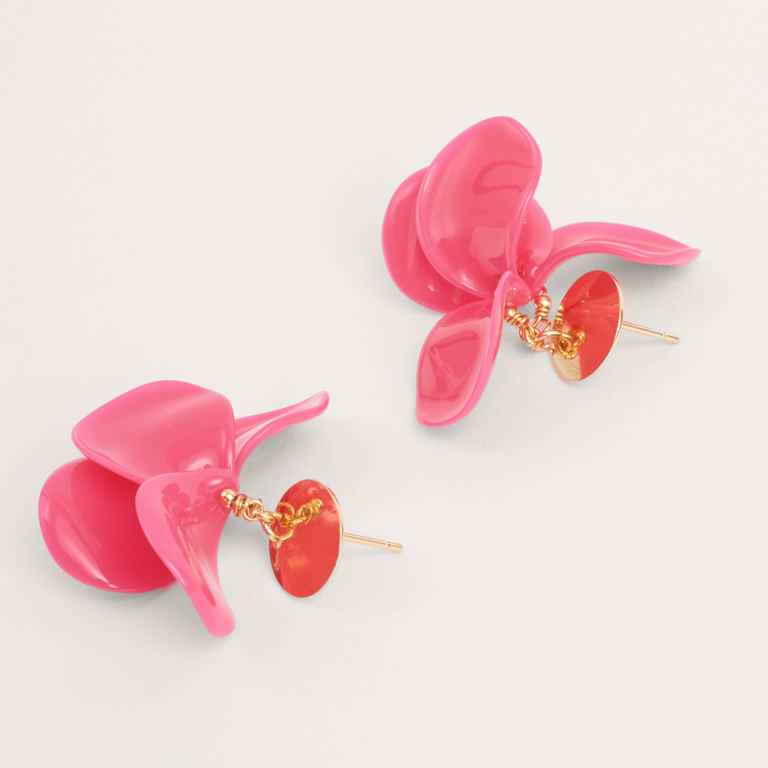 Cada temporada florecen de forma sostenible en nuestro taller de Madrid, en una gama de color limitada y exclusiva. Cada pieza está realizada a mano por artesanos locales, en metacrilato y latón dorado. Y son tan ligeros como parecen.